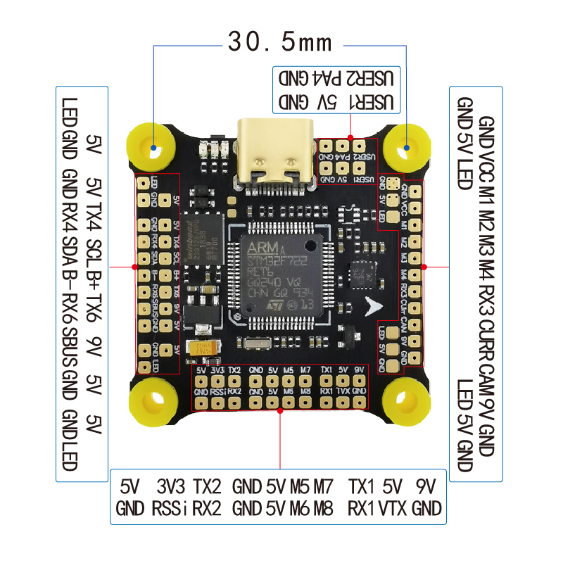 陀 螺 仪:MPU6000/ICM20602(二选一,其中一个为备用不能同时使用)